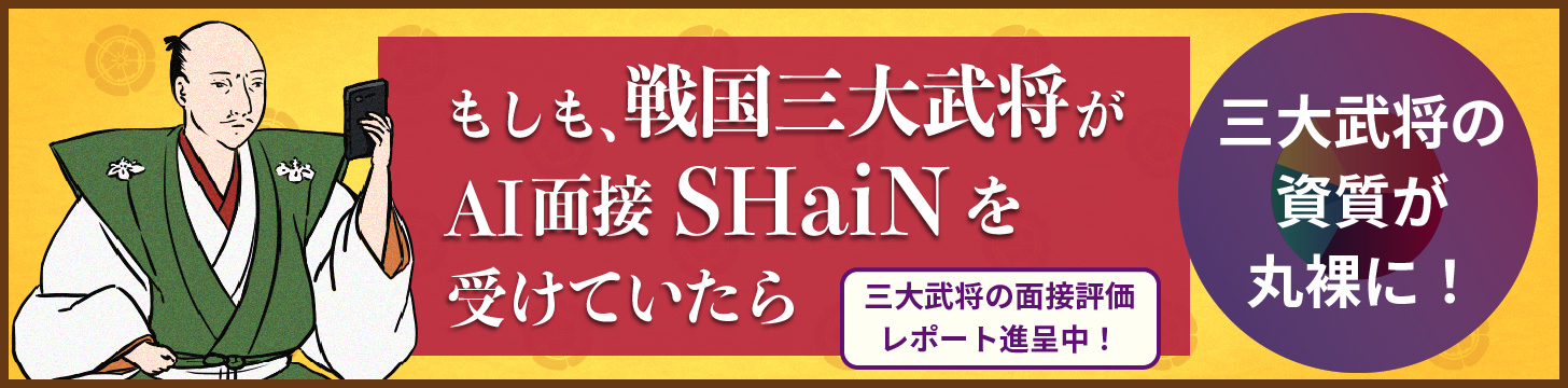 資料請求いただいた方に【戦国三大武将の面接評価レポート】を進呈。 資料請求後、10件分を無償でご利用いただけるようになります。